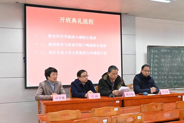2023年12月19日,“国培计划(2023)”江西省幼儿园学科带头人教研能力提升培训班在章贡校区隆重举行。教育科学学院院长邱小健教授、继续教育与培训学院副院长宁峰、教育科学学院符太胜教授出席开班仪式,来自全省各县区市的80位幼儿园学科带头人参加此次培训。