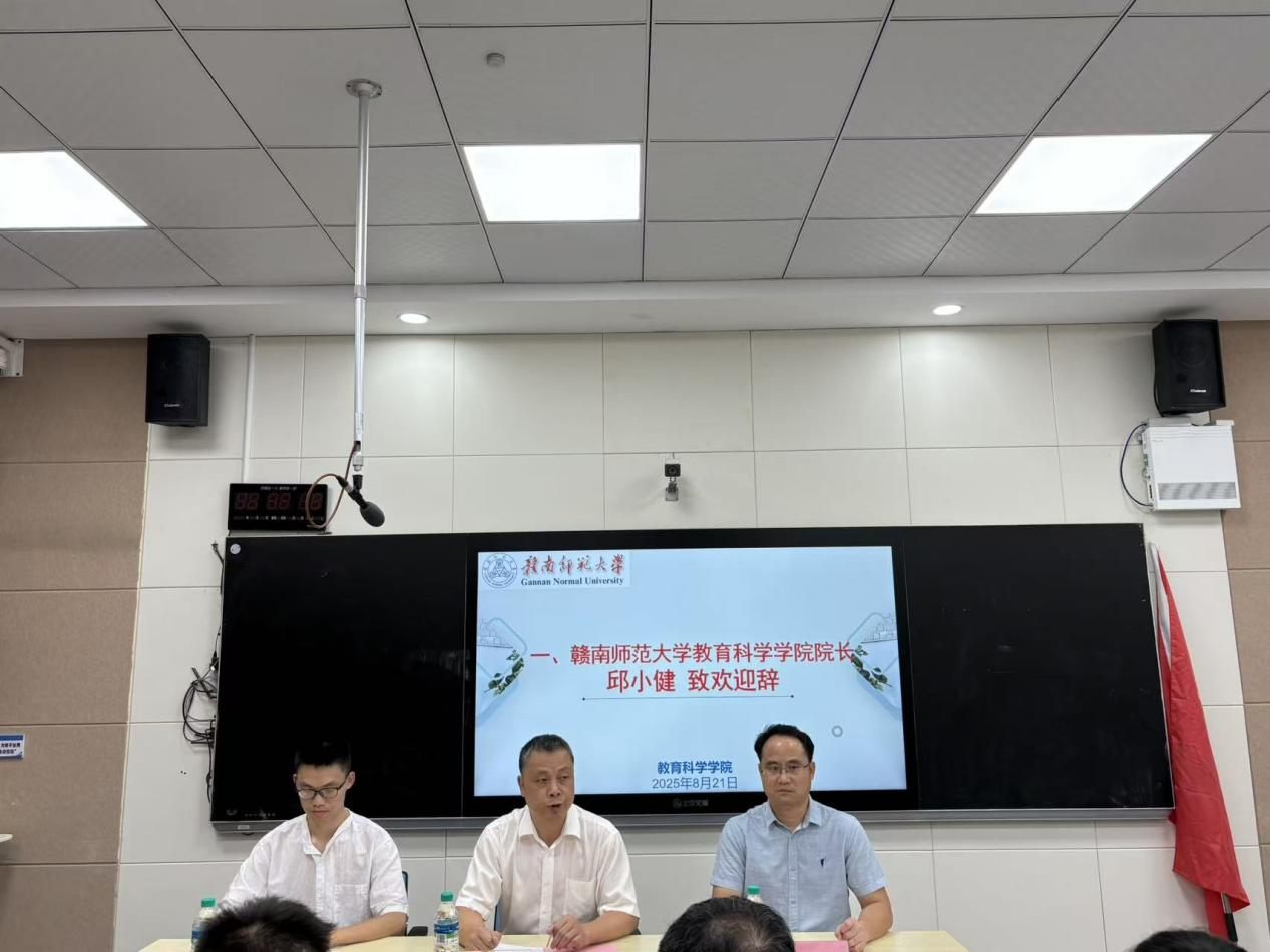 2025年8月21日下午,赣州市乡村小学(教学点)校长培训班在赣南师范大学蓉江校区正式开班。太阳成集团tyc122cc入口院长邱小健、太阳成集团tyc122cc入口教授曾素林及赣州市教育局教师工作科干事刘昊翔出席开班仪式。来自赣州市十八县(区)的50位乡村小学(教学点)校长参加此项目培训。开班仪式上,邱小健院长介绍了赣南师范大学的基本情况,解读了本次培训的目标和内容。同时,他希望大家在思想上高度重视,用心学习,学以致用,搭建学习共同体,互帮互助,力求共同成长。学员代表吴岳校长围绕三个坚决:坚决转变角色、坚决勤思善问、坚决不忘初心作发言,强调将这次学习作为新的起点,为乡村振兴贡献教师育人的坚实力量。刘昊翔老师围绕“严守纪律,端正学风”“潜心学习,深入思考”“学以致用,谋划未来”作动员讲话,强调校长们要把握学习机会,主动思考,碰撞智慧,激发干事创业的新思路、新动能,并将所思所学转化为提升办学质量、深化教学改革、落实立德树人根本任务的具体行动和务实举措。